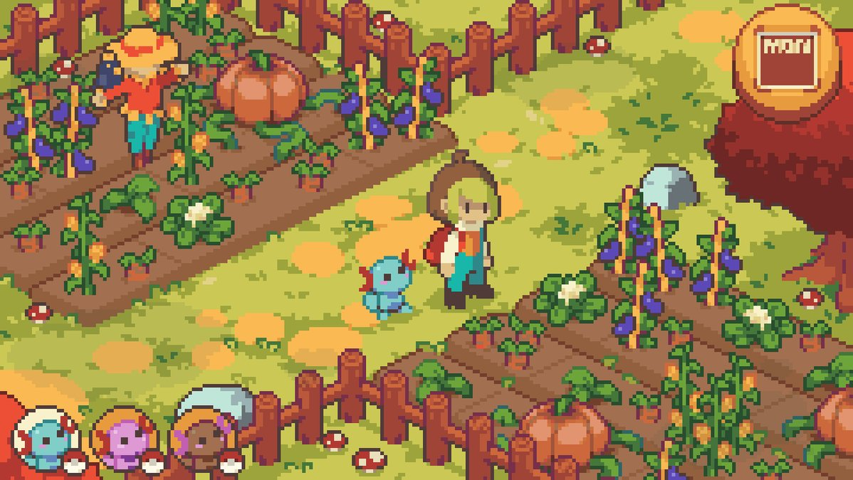 At the time of this assignment, I had been following a charming game called Rusty’s Retirement (3rd image), and thought a farming game would be perfect for the scheme. Originally I intended to have the different cubes act as different tools, with one being for crops. As I thought about it more though, I realized the ratio of tools to crops would be too much, so I dialed it back to three distinct types: the FarmCube for crop management, the MultiCube for tool management, and the SeedCube for seed management. This meant that the player could have up to a 3×3 of farmland – one crop per cube – while also having only two cubes to manage.