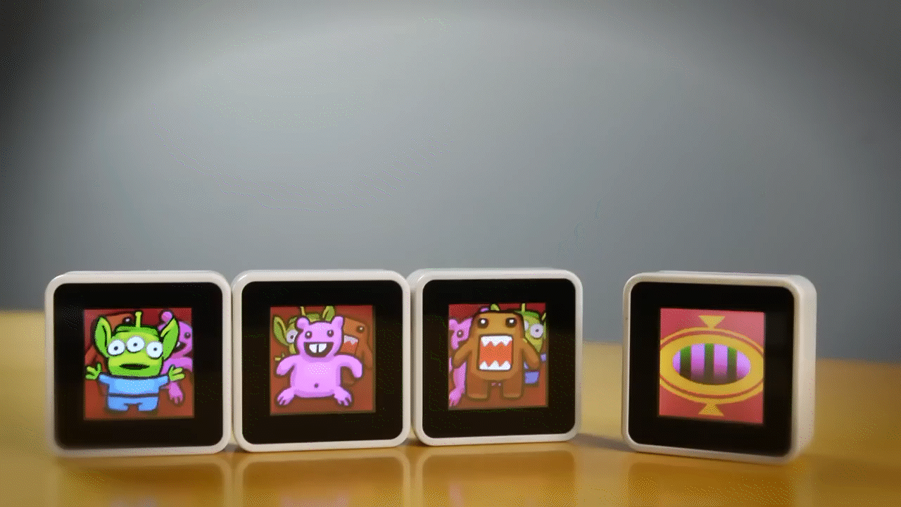 These cubes can support up to 11 total connections with one another, with each screen having a 128×128 full-color LCD. Furthermore, with only a 32-bit ARM processor and 8MB Flash, it is quite limited on what it can do. That being said, the cubes have a few interesting features that I took advantage of: proximity detection, tap detection, shake detection, and tilt detection.